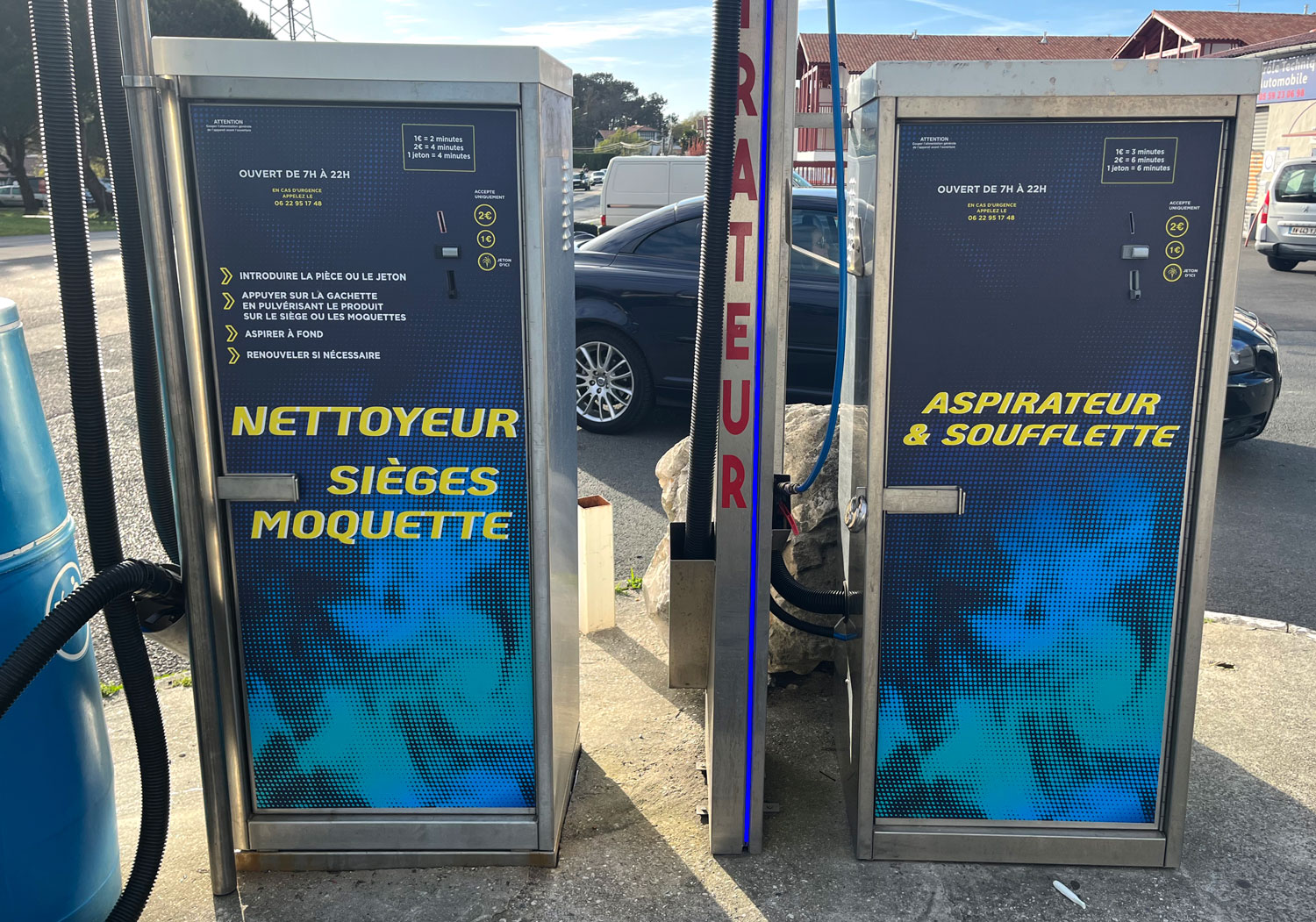 Ce lavage automatique situé à Bidart a fait appel à Jal Studio pour retravailler les visuels de ses différentes machines. Il a fallu repenser la lisibilité et la compréhension du déroulement d’un lavage.